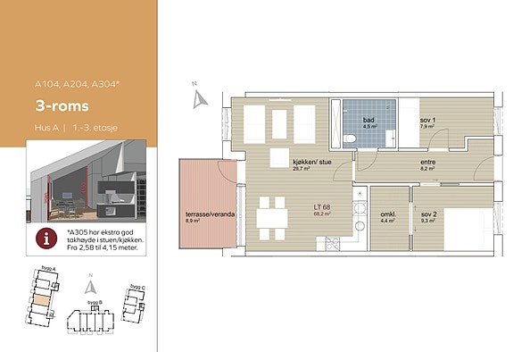 Vannbåren gulvvarme i alle rom bortsett fra soverom og bod