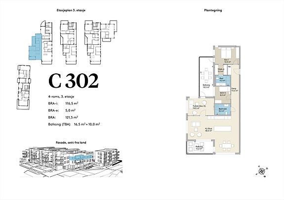 Dette er en virkelig stor, flott, leilighet med 2 store balkonger. Velfungerende planløsning med 3 gode soverom, hvor man kan bruke det ene som for eksempel. tv-stue. Walk-in garderobe og bad i tilknytning til hovedsoverommet. I tillegg et romslig bad/vaskerom med adkomst fra gangen. Meget somslig stue med åpen kjøkkenløsning. Her er plass til stor kjøkkeninnredning og kjøkkenøy som gir rom for sosial matlaging. Stuen innbyr til flere gode møbleringmuligeter. Fra stuen er det dør ut til en hyggelig balkong mot sjøen. Her kan man nyte sjøutsikten og følge med på livet på brygga om man vil.
