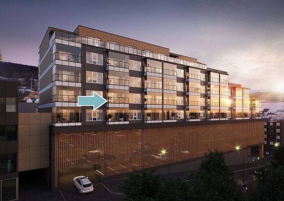 Leilighet nr 19 type Bodil med innglasset balkong og utsikt over Generalhagen.