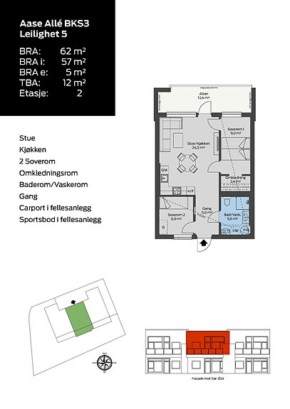 - Alle leiligheter har ekstra takhøyde i stue og kjøkken