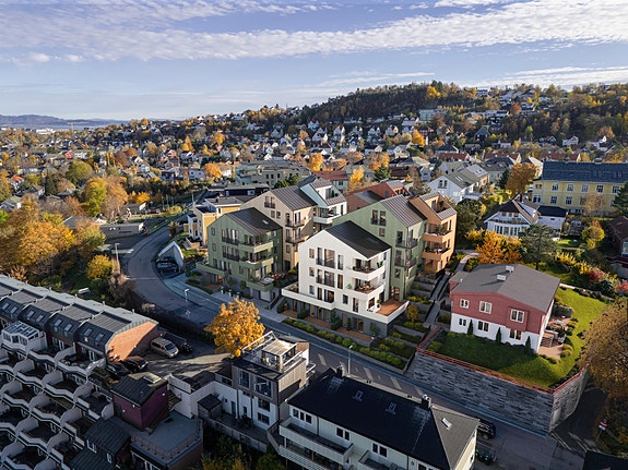 Hvis du liker deg i høyden, kan en av toppleilighetene være noe for deg. De går over to etasjer, og har ekstra store terrasser og eksklusive materialer - som fiskebeinsparkett i eik og kjøkkenbenker i stein. Utbyggerens kvalitetsfokus gjenspeiles selvfølgelig også i de øvrige leilighetene. De største leilighetene kan også tilpasses med gasspeis og vinrom, som en del av tilvalgsprosessen.