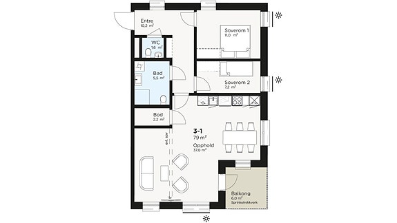Velkommen til leilighet 3-1 i Lille Bytorget. En praktisk 3-roms leilighet på 84 kvm i 3. etasje. Sydvendt balkong på 6 kvm samt bod i kjeller på 5 kvm. Laminatgulv i oppholdsrom og bad med fliser og innredning på 80 cm bredde.