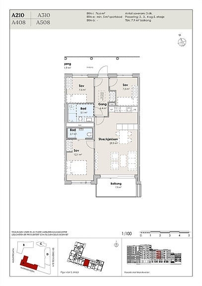Plantegning A210 - en optimal leilighet for utleie eller for deg som ønsker å leie ut eller to soverom i egen leilighet