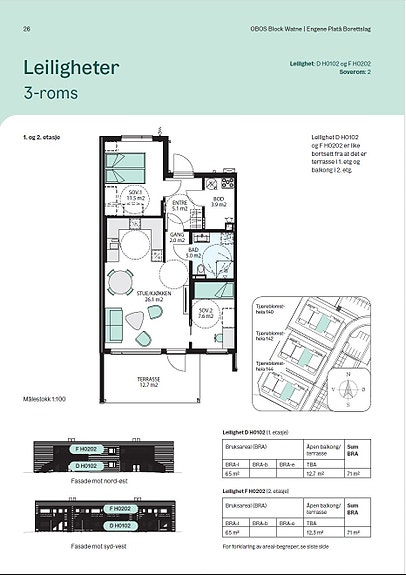 Leilighet i 2. etasje med 2 soverom og solrik balkong på 12 m2