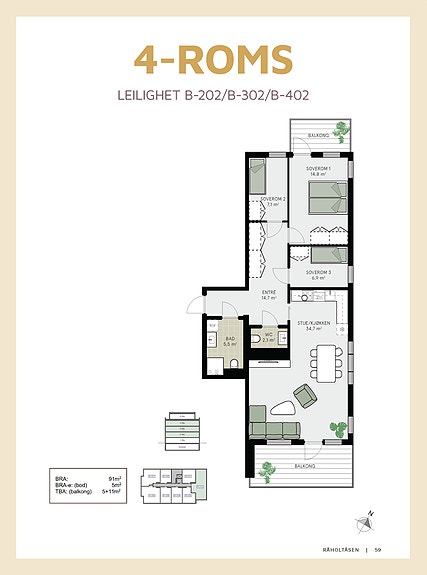 - 91 m² (BRA-i)