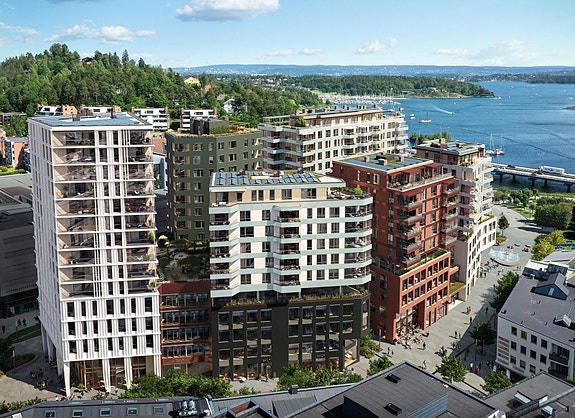 De fem nederste etasjene blir næringslokaler, med butikker og serveringssteder mot gater og torg i første etasje. Dette vil skape nytt liv i Sandvika