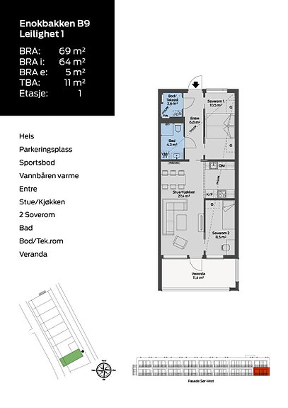 Enokbakken | 16 moderne leiligheter i splitter ny boligblokk | 2-3 sov | Fast parkering | Utsikt og solrikt | Heis