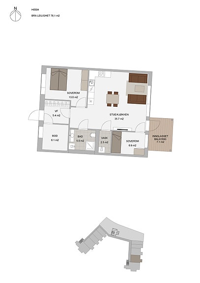 Nå har du muligheten å sikre deg en splitter ny leilighet med en sentral beliggenhet i Alta sentrum og samtidig med en flott utsikt over Altadalen. Boligdelen i B8-prosjektet består av 40 moderne leiligheter som har gangavstand til alt av sentrumsfasiliteter. Fra din egen balkong kan du nyte nordlysets magiske dans på vinterhimmelen, og når solen endelig vender tilbake etter mørketiden i januar, er dette en av de første tomtene i Alta hvor solen skinner. Leilighetene er plassert i plan 2, 3, 4 og 5 i et kombinasjonsbygg med næring - hvorav flere av leilighetene i 2.etasje disponerer hver sin romslige terrasseplatt. Boligene er i fem ulike størrelser, og spenner fra smarte 2-roms til romslige 4-roms enheter, alle med moderne planløsninger som kombinerer funksjonalitet og estetikk. De største leilighetene vil også ha mulighet som tilvalg for en egen hybel, som kan gi gode ekstrainntekter. Leilighetene har innglasset balkong.