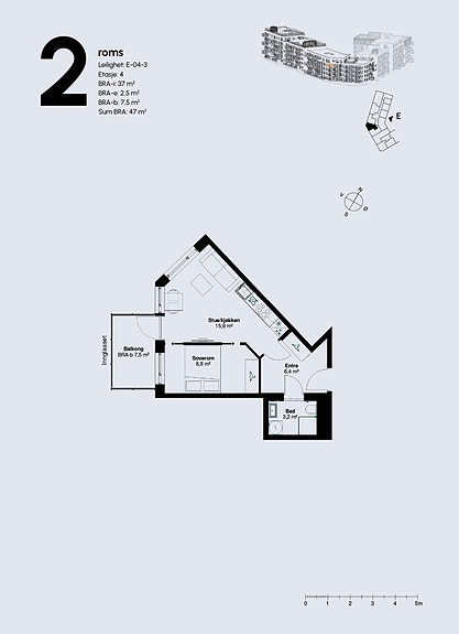 - BRA-e (eksternt bruksareal): 2,50 kvm