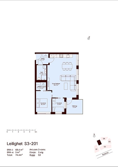 Leilighetene i S3 leveres nøkkelferdige med god standard på innredning og utstyr, med en variert miks av gode 2- til romslige 4-roms leiligheter. Fokus på gode, sosiale soner. S3 huser et flott felleslokale med inngang fra bakkeplan, som vil bli felles for hele prosjektet Sandsli Stasjon. Perfekt for å samle venner, feire store dager eller bruke som din helt egne businesshub, hvor du kan jobbe i inspirerende omgivelser.
