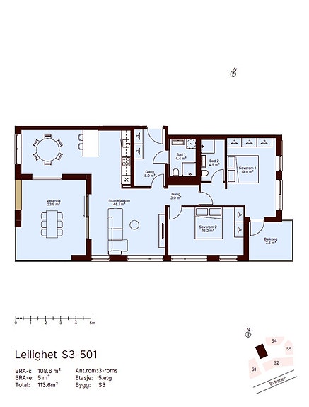 Leilighetene i S3 leveres nøkkelferdige med god standard på innredning og utstyr, med en variert miks av gode 2- til romslige 4-roms leiligheter. Fokus på gode, sosiale soner. S3 huser et flott felleslokale med inngang fra bakkeplan, som vil bli felles for hele prosjektet Sandsli Stasjon. Perfekt for å samle venner, feire store dager eller bruke som din helt egne businesshub, hvor du kan jobbe i inspirerende omgivelser.