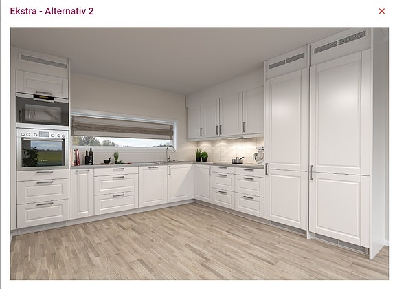 På trysilhus.no kan du velge det kjøkken oppsettet som passer deg. Hvitevarer er tilvalg.