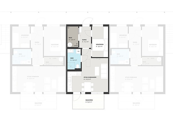 Planløysing 45. A3 og B3 har speilvend løysing.