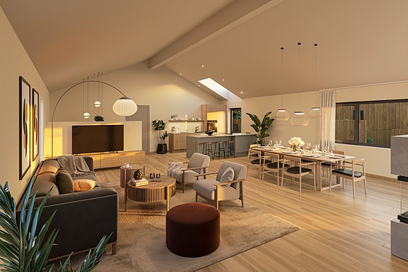 Stort allrom med utgang til uteplass - Illustrasjon