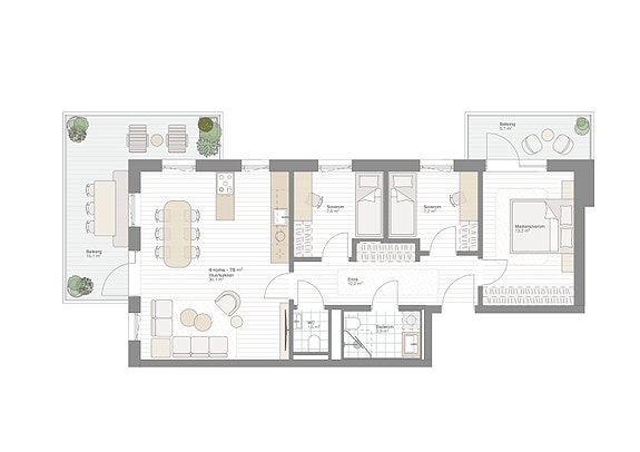 - Store, solrike hjørnebalkonger: Flere av 4-roms leilighetene har store hjørnebalkonger, som gir rikelig med sollys og fantastisk utsikt.
