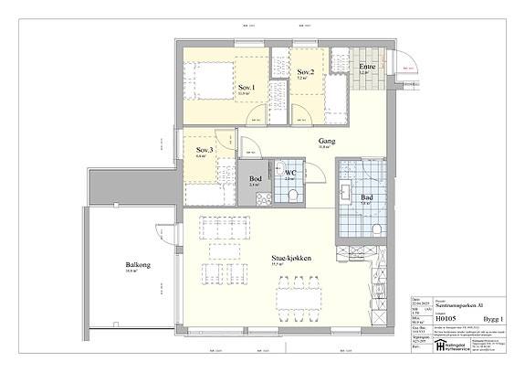 Leilighet på 91 m² med 3 soverom