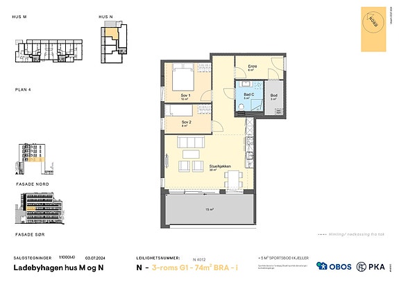 Leiligheten ligger i 4. etasje i Hus N og byr på en gjennomtenkt planløsning med romslig stue/kjøkkenløsning og en solrik, privat balkong på hele 15 kvm vendt mot sør. Her får du gode solforhold og flott utsikt. Estimert innflytting er september 2025.