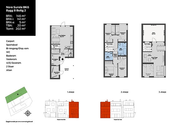 Delfelt BK6 består av tre innholdsrike familieboliger: en enebolig og en tomannsbolig. Husene ligger nesten innerst i feltet. Nord og øst for delfeltet er det landbruket som rår. I forkant av boligene er det grønt og fint fellesområde med trivelige leke- og oppholdsplasser. Fint hus på bra plass: Det er hit du skal flytte familien!