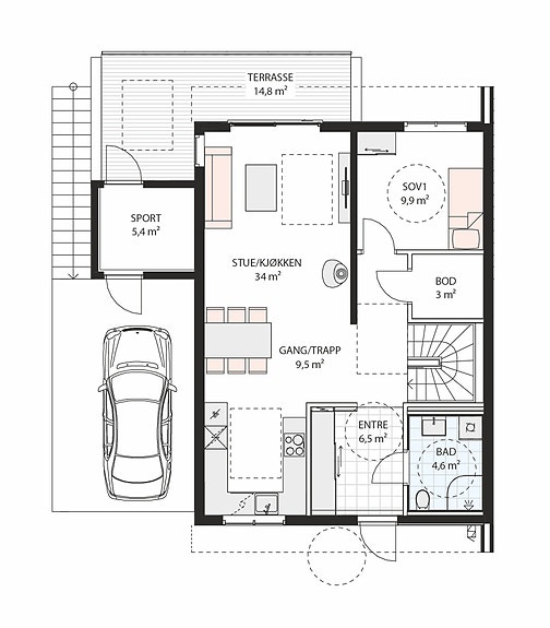 Eneboliger i kjede med flott utsikt. Attraktiv beliggenhet på toppen av Begbyåsen.