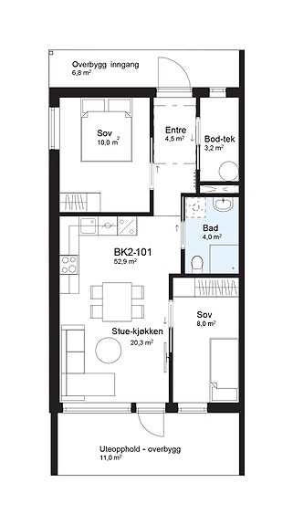 Bekkemyrvegen 19 tilbyr åtte stilfulle og funksjonelle leiligheter på ca. 59 kvm BRA, som gir deg både komfort og kvalitet.