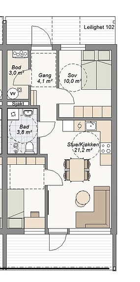 Leilighetens areal er rundet opp/ned til nærmeste hele tall i den til enhver tid gjeldende prisliste og prospekt.