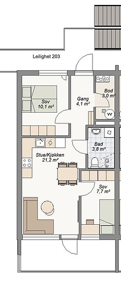 Bekkemyrvegen 19 tilbyr åtte stilfulle og funksjonelle leiligheter på ca. 59 kvm BRA, som gir deg både komfort og kvalitet.
