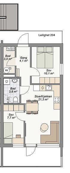 Bekkemyrvegen 19 tilbyr åtte stilfulle og funksjonelle leiligheter på ca. 59 kvm BRA, som gir deg både komfort og kvalitet.
