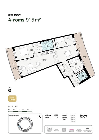 Lnr. 3026 - Super 4-roms med to bad, to balkonger