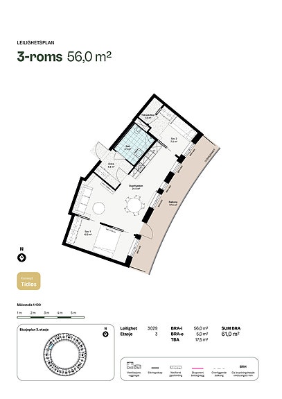 3 roms med stor balkong vendt inn mot gårdsrom. *Mulighet for Bostart/​Deleie. Leilighet 3029