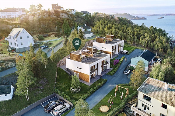 Familieboliger med fantastisk beliggenhet, vidstrakt sjøutsikt og takterrasse med gode solforhold| Ny vei er påbegynt!