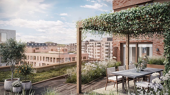 Mariakvartalet trinn 4 - leilighet I609 har 60 kvm privat takterrasse, i tillegg til balkong med sjøutsikt.