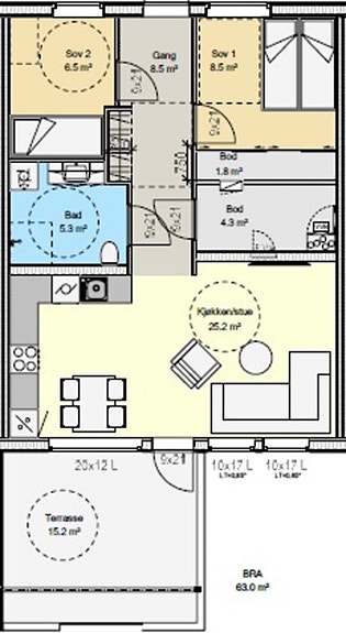 Se for øvrig leveransebeskrivelse, tegninger og utkast til vedtekter for sameiene.
