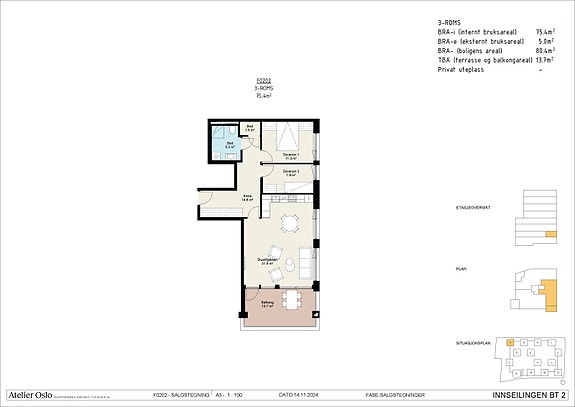 - TBA (terrasse-/balkongareal) 13,70 kvm