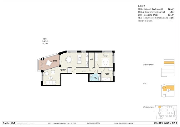- TBA (terrasse-/balkongareal) 12,50 kvm