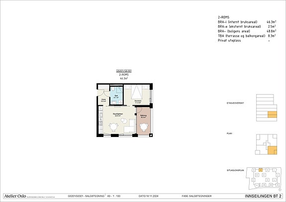 - TBA (terrasse-/balkongareal) 8,30 kvm