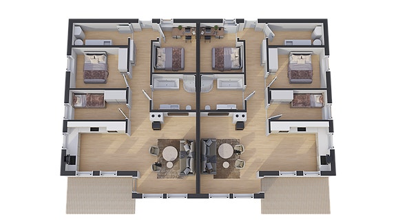 Leilighetene går over ett plan og har et BRA på 89,4 m² med følgende løsning: Entré/gang, bad, teknisk vaskerom, 3 soverom, samt stue med åpen kjøkkenløsning og utgang til vestvendt terrasse eller balkong på 10,4 m².