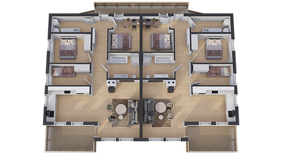 Leilighetene går over ett plan og har et BRA på 89,4 m² med følgende løsning: Entré/gang, bad, teknisk vaskerom, 3 soverom, samt stue med åpen kjøkkenløsning og utgang til vestvendt terrasse eller balkong på 10,4 m².