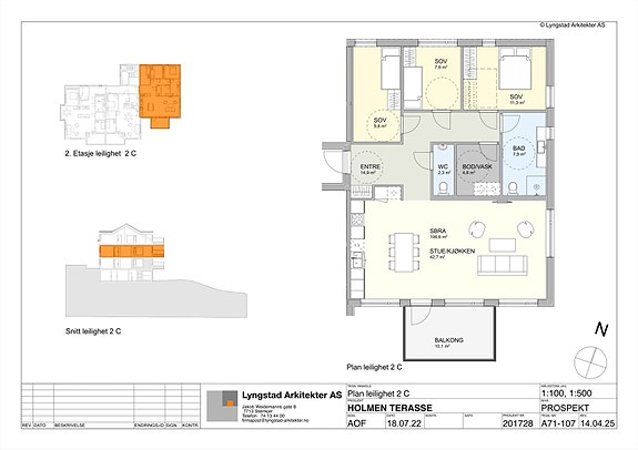 Det gjøres oppmerksom på at frihåndstegninger, perspektiver, utomhusplan, plantegninger og bilder i prospektet er av illustrativ karakter og inneholder derfor detaljer som farger, innredninger, møblering, beplantning og arkitektoniske detaljer m.v. som ikke inngår i leveransen. Stiplede løsninger/ innredninger leveres ikke. Plantegninger og illustrasjoner som viser ulike innredningsløsninger er ment som illustrasjoner for mulige løsninger. Disse løsningene inngår ikke i standardleveransen. Tegningene i prospektet bør ikke benyttes som grunnlag for nøyaktig møbelstilling, da målestokkavvik kan forekomme ved trykking/ kopiering. Det tas forbehold om at sjakter og føringsveier for VVS-installasjoner kan bli endret. Entreprenøren har ansvaret for oppfølging av gjeldende krav, lover og forskrifter.