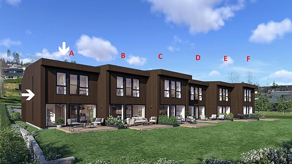 - Forskjøvet plassering av enhetene gir en eksteriørmessig "rytme" og øker utekvalitetene.