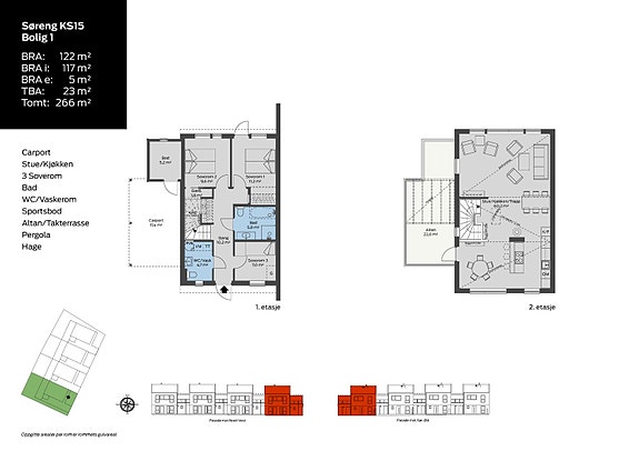Herlige eneboliger over 2 plan med stue og kjøkken i andre etasje