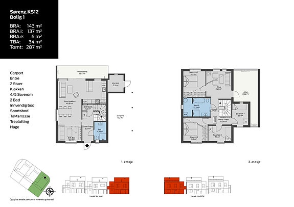 - 2 bad - hovedbad på over 10 m2 med mulighet for badekar og egen vaskeromsdel