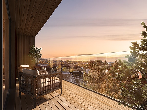 Leiligheten har vestvendt balkong med gode solforhold og utsyn mot området rundt