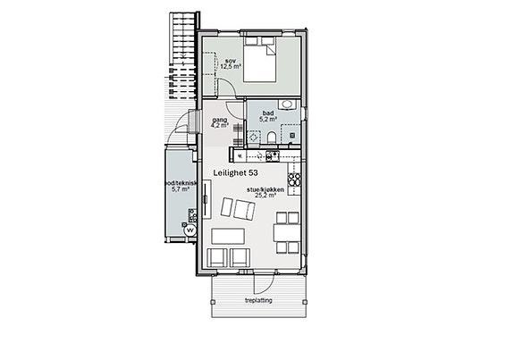 - Utebod ved inngangspartiet på ca. 5,7 kvm