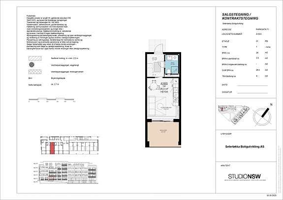 Det blir utstedt energiattest for den enkelte leilighet. Boligens varmetap og energibehov er dimensjonert iht. teknisk forskrift av 2017, TEK 17. Energimerkingen er beregnet til å ligge i kategori A til B. Det tas forbehold for at avvik kan forekomme spesielt i leiligheter med mye vindusflate.