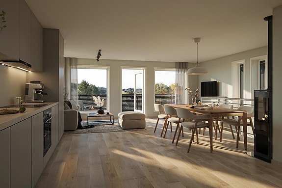 Boligene har en arealeffektiv og familievennlig planløsning, og leveres med blant annet: