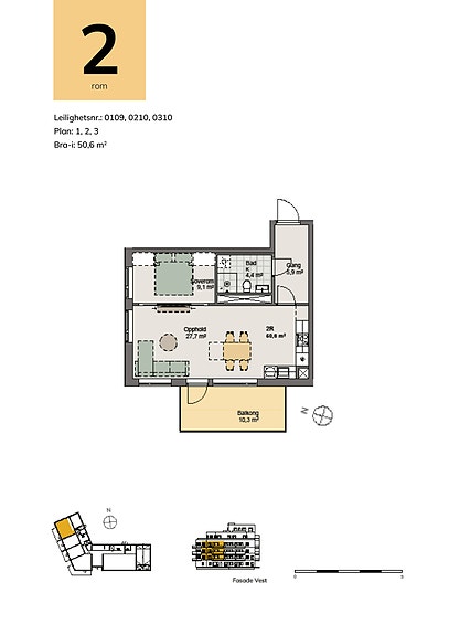 Bruksareal: 50,60 kvm, BRA-i: 50,60 kvm , TBA: 10,30 kvm