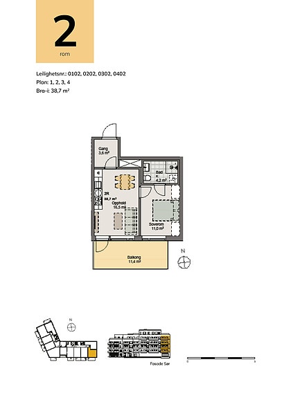 - BRA-i: xx m² (entré, gang, bad, toalettrom, soverom, spisestue, kjøkken)