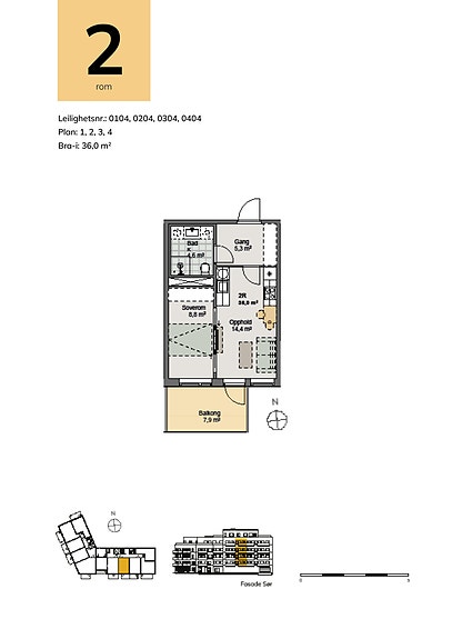 Totalt BRA '36 kvm består av: