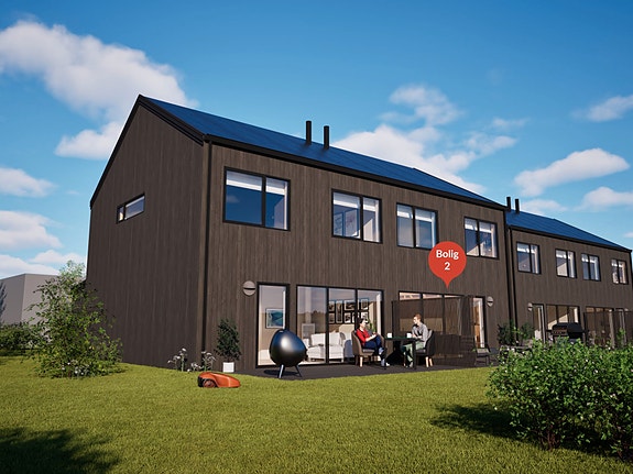 Denne boligen har et areal på 109 kvm fordelt over to etasjer og inneholder tre soverom. Det blir også montert elbillader. Boligen leveres nøkkelferdig. Entréen har fliser på gulv med gulvvarme, og kjøkkenet fra Aubo er utstyrt med høykvalitets integrerte hvitevarer. Badene er flislagte med 60x60 fliser, og det er 1-stavs eikeparkett i stuen, kjøkkenet og soverommene.
