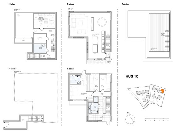 Kjelleretasje: Gang med adkomst fra parkeringskjeller, 2 boder, 1 bod / teknisk rom, vaskerom.